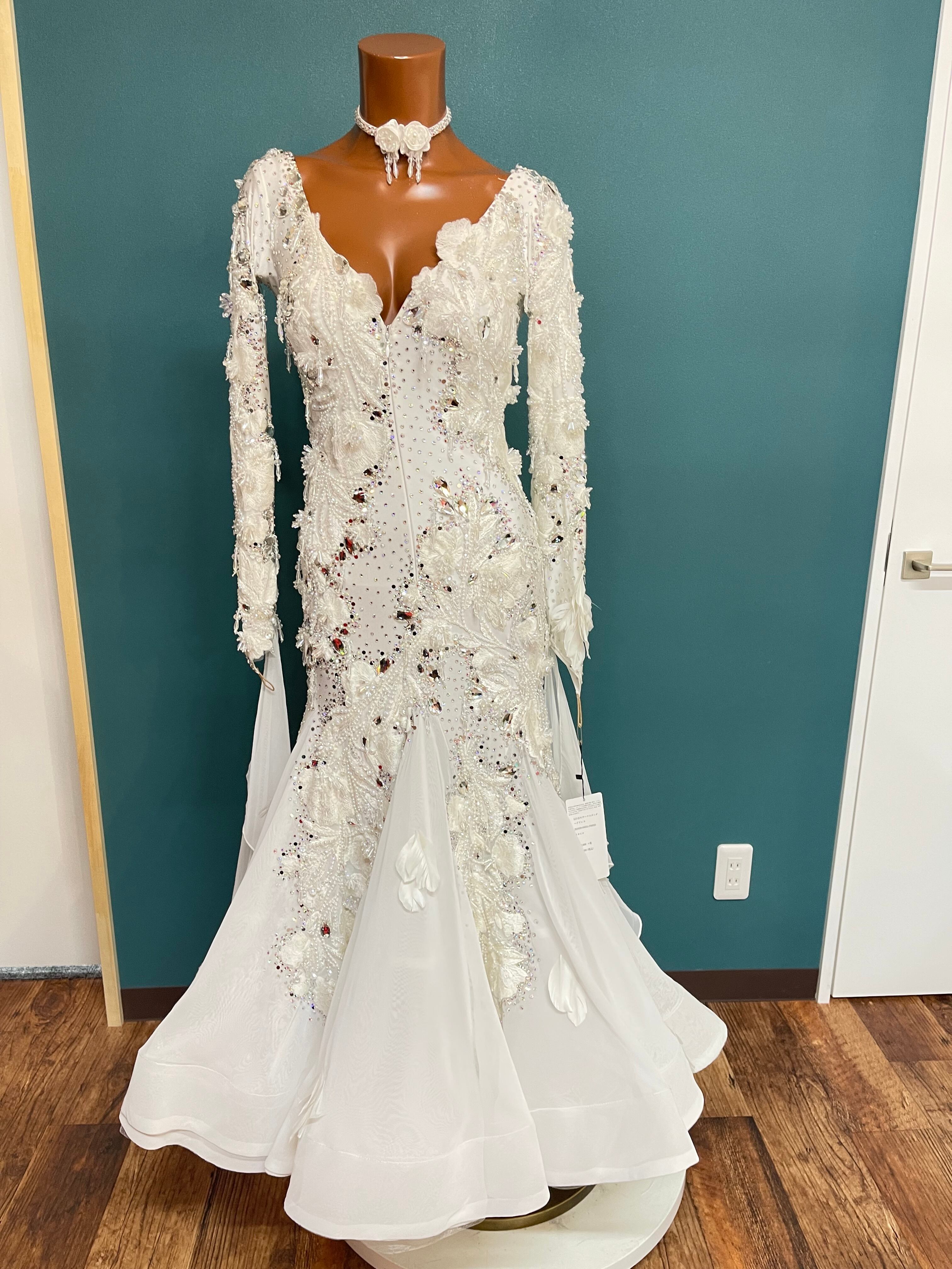 ホワイトでありながら重厚感があります。マーメイドスタイルでスタイリッシュなデザイン